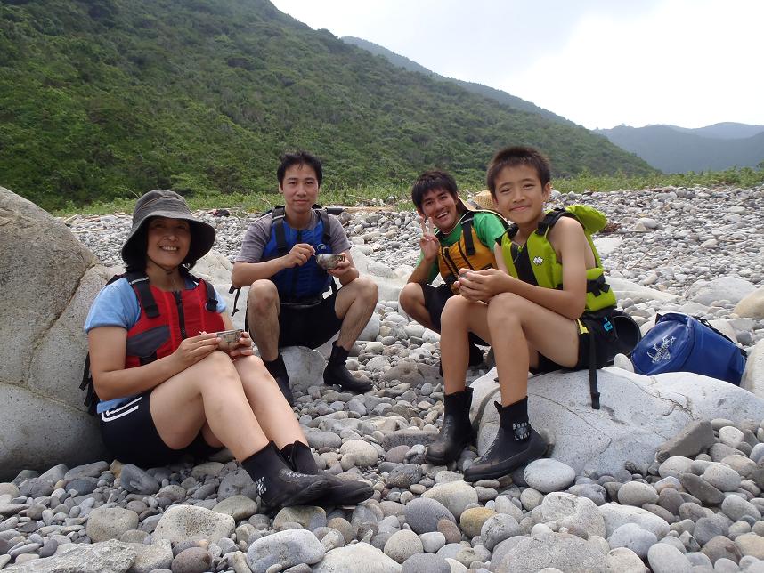 でしたが、ジェミニの親子のお子様が、小学生1年で漕げそうになかったために、ガイドがジェミニの後部を漕ぎ2艇で出発しました。